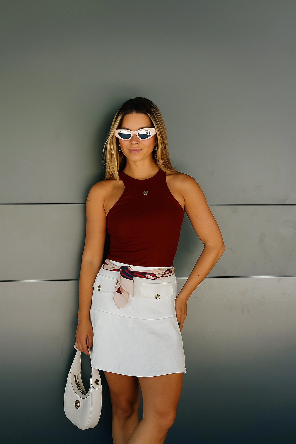 Com design minimalista e cavas bem desenhadas, a Keyla é versátil para compor desde produções básicas até combinações mais sofisticadas com alfaiataria ou jeans estruturado.