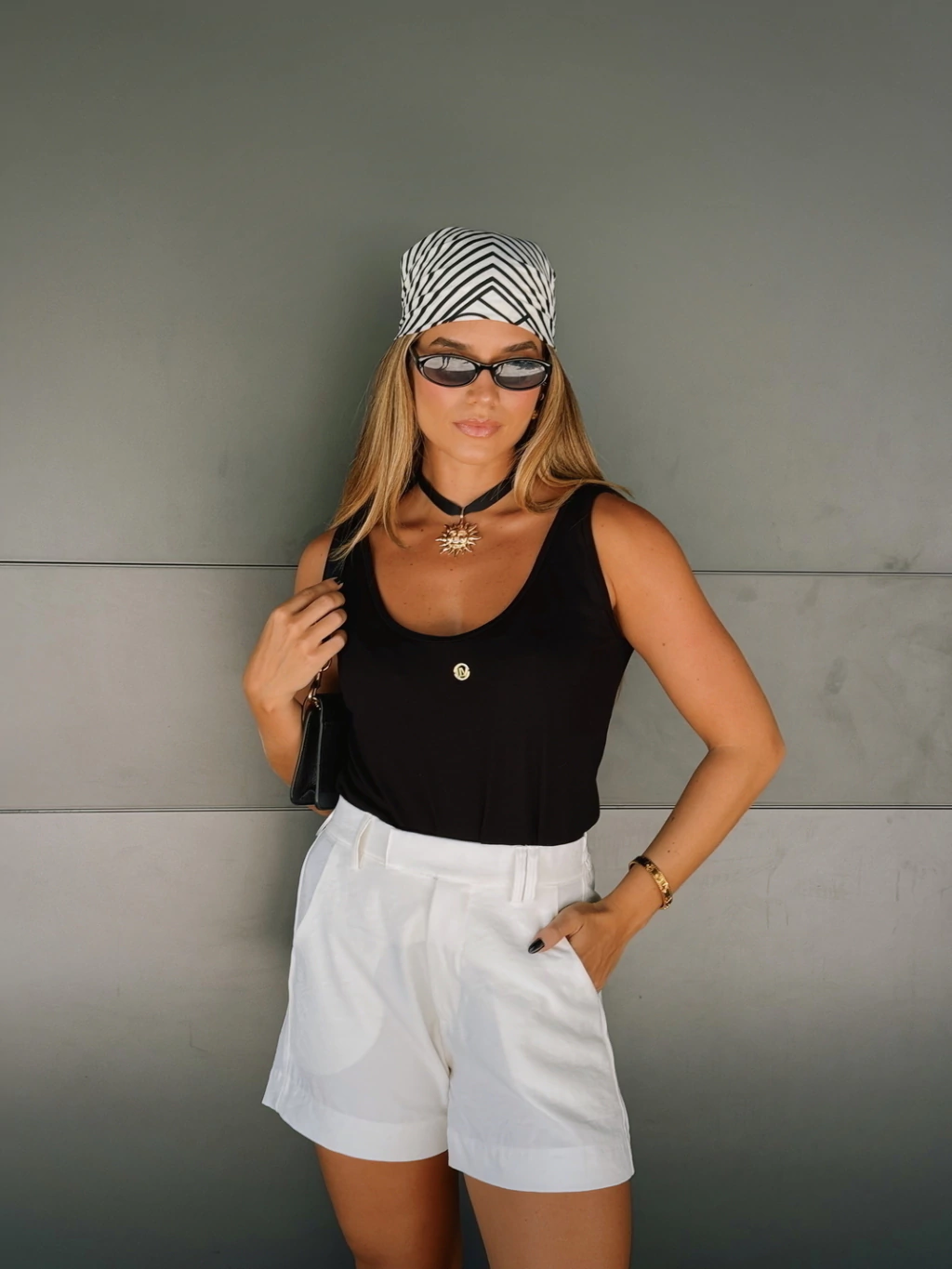 O Short Marcelle traz o equilíbrio perfeito entre conforto e elegância. Com cintura alta e cós estruturado na frente, ele valoriza a silhueta e garante um caimento impecável.